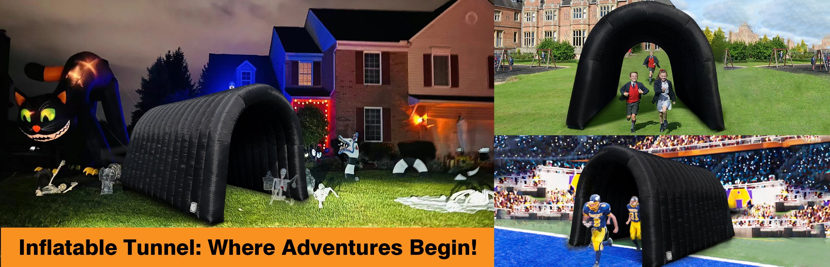 OZIS 16x10x10ft Inflatable Tunnel Entrance Sports Tunnel with Built-in Blower, Black Football Tunnel