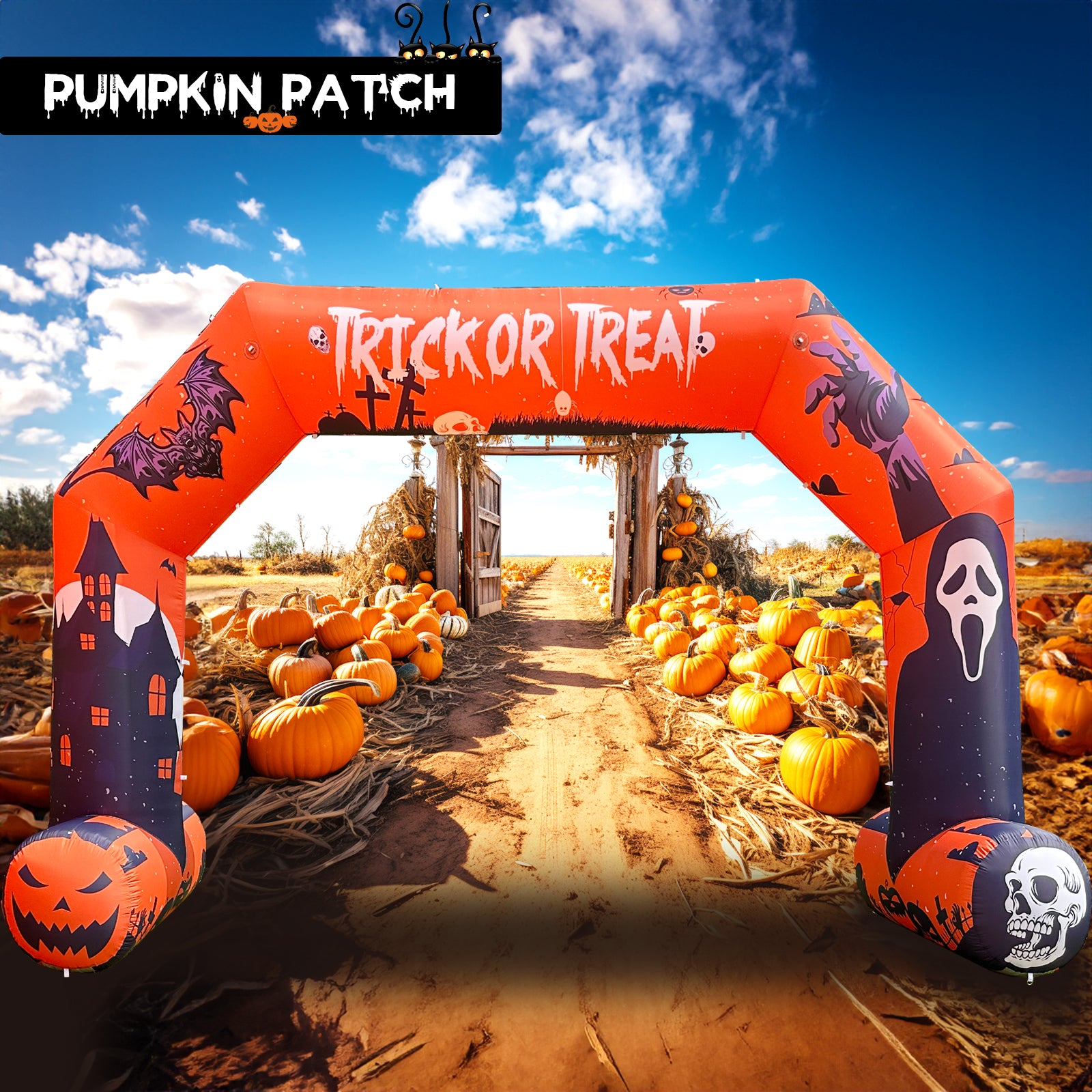 1. Pumpkin Patches and Farms: Whether at a pumpkin patch or farm, this inflatable archway adds a touch of whimsy to the already magical pumpkin-seeking experience. Its eerie charm enhance the atmosphere, making it an ideal choice for family outings.