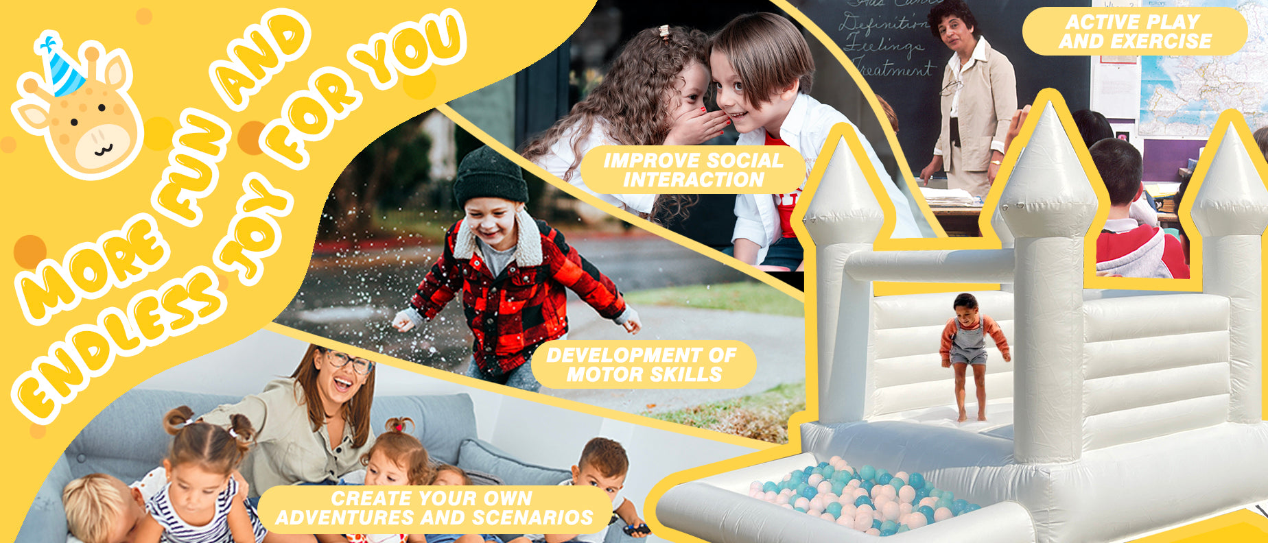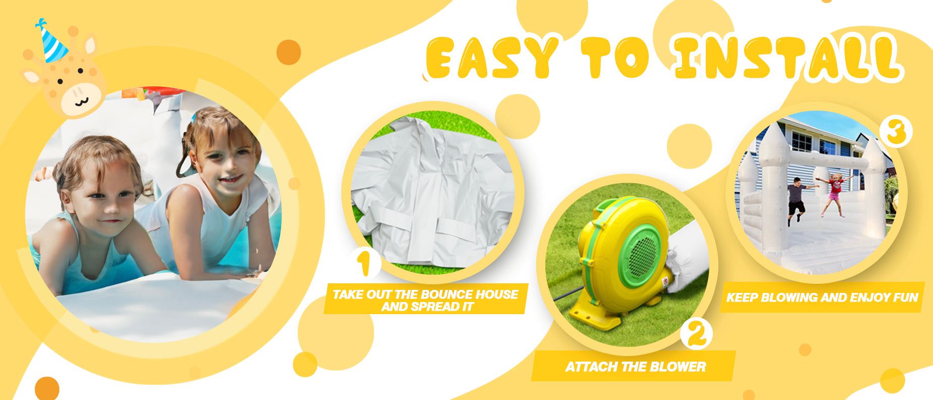 Zipper air vent design can quickly deflate in 3 mins and save your packing time. You can also put some sandbags to fix the bouncy house.