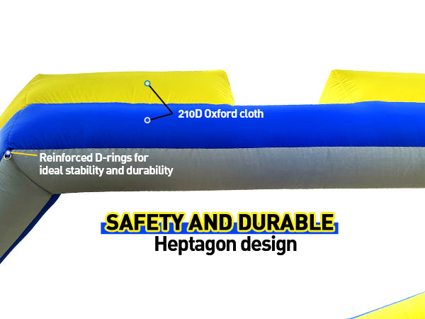 We select the special high strength 210D Oxford cloth and wear-resistant PVC bottom with double needle sewing process to produce high quality inflatable Gaga ball pit so that it more durable and stable.