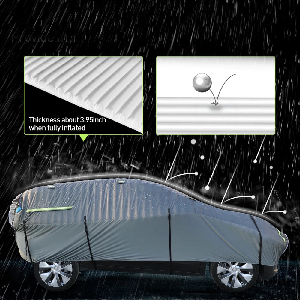 2. Advanced Inflatable Core: Our inflatable PVC airtight inner layer Delivers outstanding shock absorption, putting an end to those dreaded hail dents. Once inflated, turn off the air pump – no continuous inflation required.