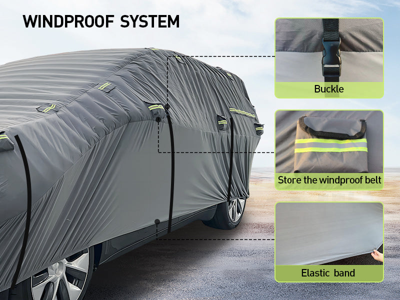 3. Gentle Bottom Layer: the soft polyester elastic bottom layer protects your car's paint from scratches and wear, and the elastic hem ensures a snug fit.