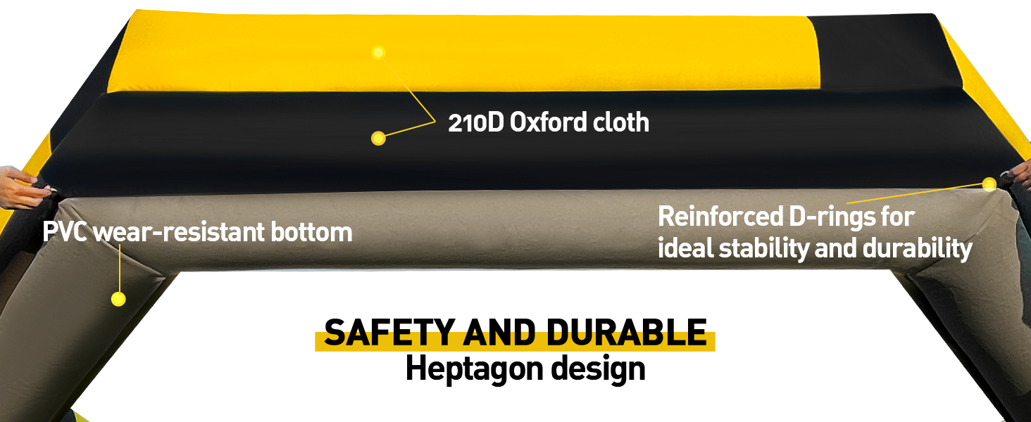 The Gaga Ball pit is crafted from commercial-grade PVC and reinforced with thick 210D Oxford fabric. This combination ensures durability while remaining lightweight. Additionally, the inflatable pit walls are designed to reduce the risk of injury, making it safer for kids to enjoy their playtime.