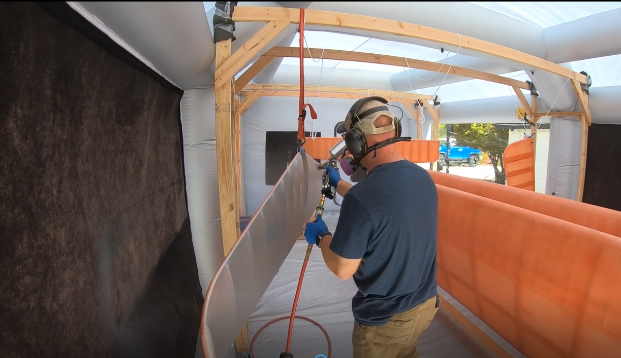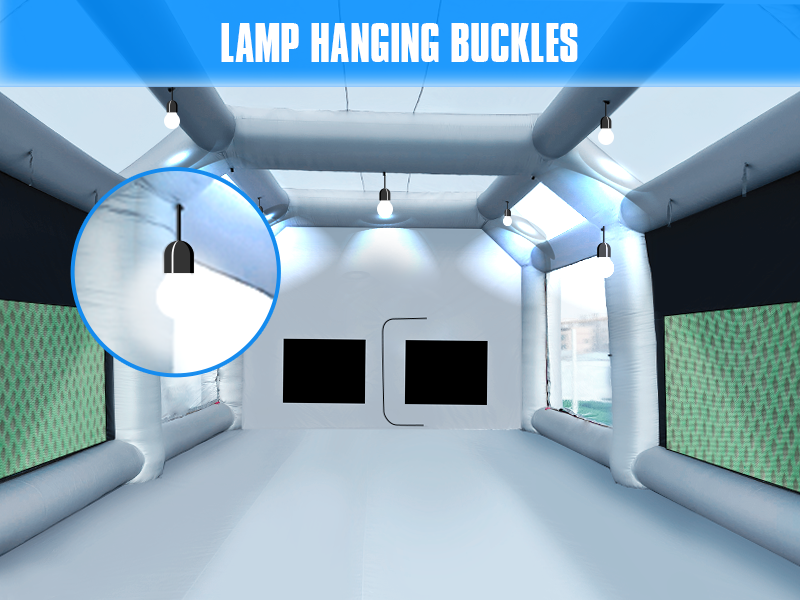 Inflatable paint booth with internal LED rings for excellent lighting and enhanced safety. (LED lights not included.)