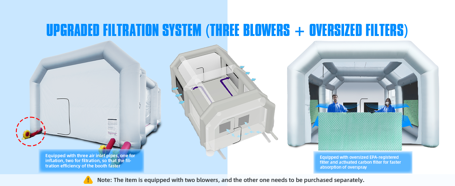 Upgrade your painting setup today and experience the difference with our top-of-the-line Inflatable Paint Booth. Take advantage of the dual filter system, easy inflation design, and durable construction to achieve remarkable painting results every time.