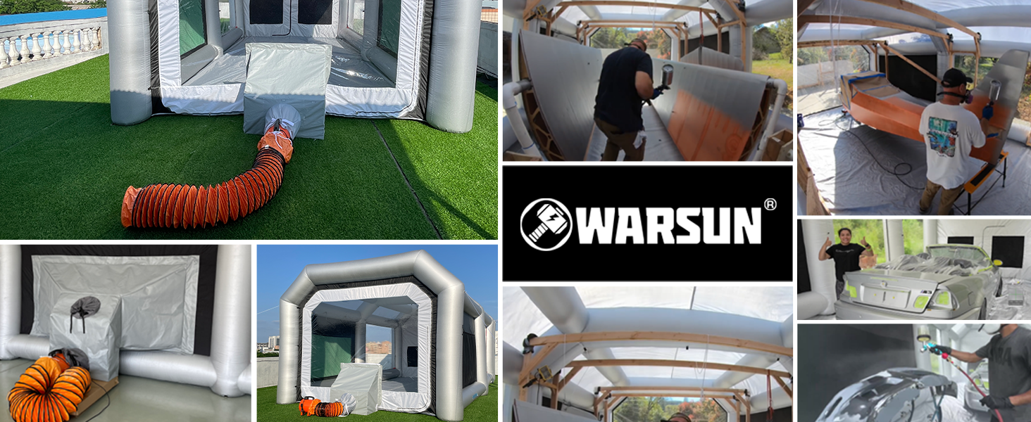 WARSUN Inflatable Paint Booth 20x11.5x9Ft with Double & Oversized Air Filters System Inflatable Spray Booth with 2 Blowers(550W+480W) Portable Spray Paint Booth Tent for Auto Parts